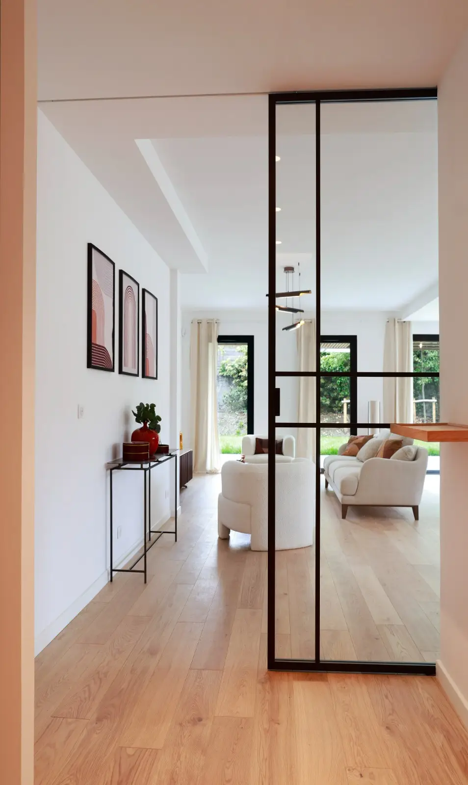 New in the Divina range: Internal sliding doors (single or double) up to 220lbs. Innovation and design come together in this aluminum steel look sliding system. The double-action soft close and identical finished sides are just some of the unique factors.