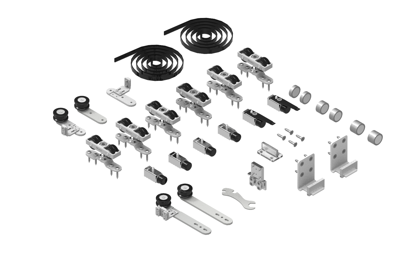 This versatile kit includes a length of header track (which you cut to size) and an extremely durable runner kit which can be ceiling mounted to create the perfect partition or barn door style door.