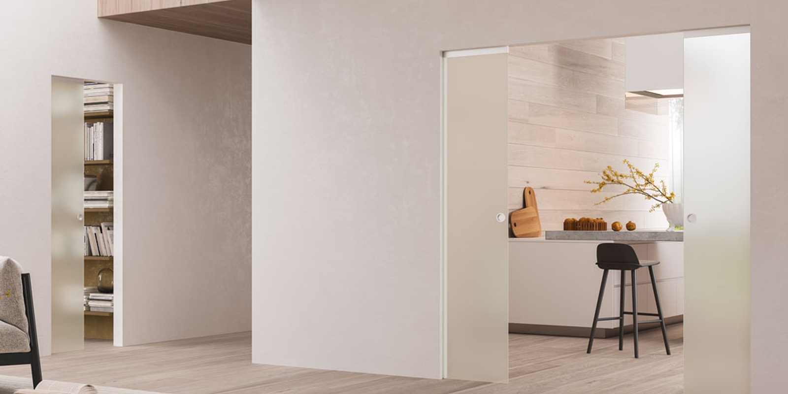 Glass is a true protagonist, ideal for giving breath and brightness to communicating rooms. It is a material that furnishes without cluttering and fits into any environment with harmonious results, bringing lightness and elegance. Because sliding pocket glass doors can be the perfect solution in several rooms of the house.