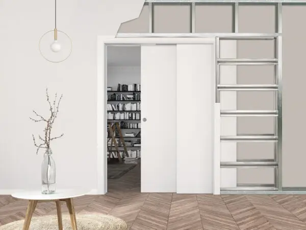 ECLISSE Telescopic accommodates two parallel sliding door into the same wall.