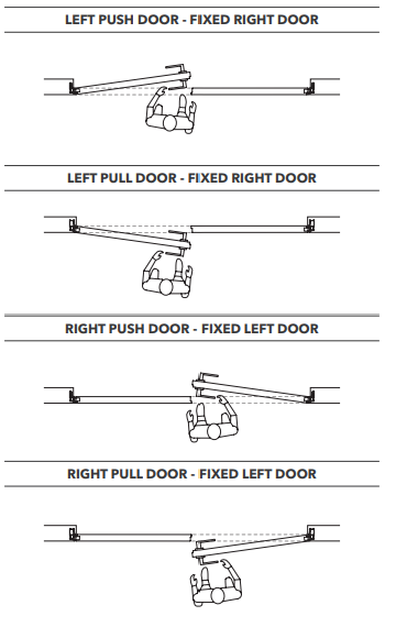 One door panel is prepared with the handle hole both in the push and pull version while the second door panel opens and closes with a latch located on its upper and lower edges.