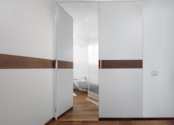 The technology behind ECLISSE Syntesis Line Battente Double is of the latest generation and aims to achieve a solution in which the door is no longer a simple passage element, but it becomes an actual decorative element.